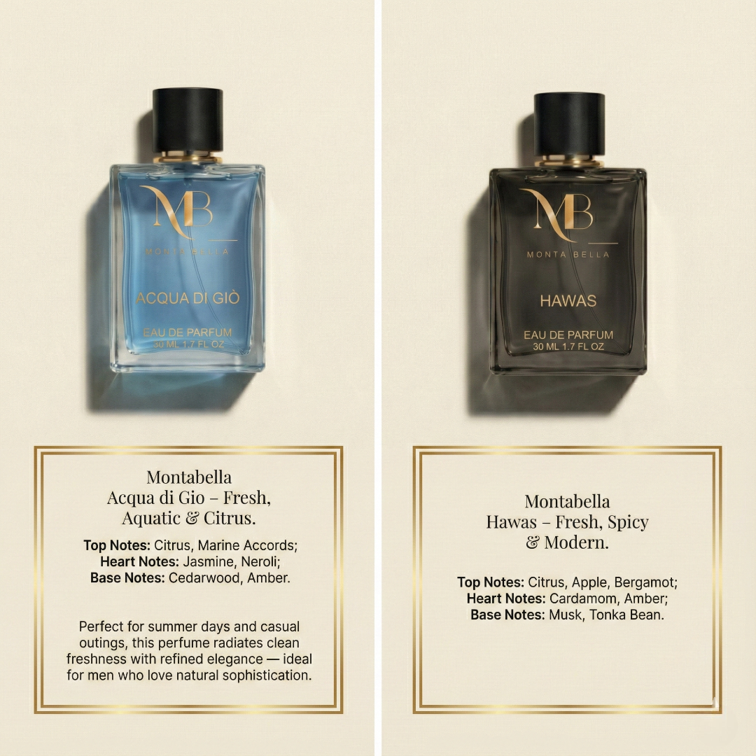 The Montabella Men’s Perfume Collection (Set of 4 x 50ml) is a celebration of masculinity, style, and sophistication. This curated set features four distinct fragrances — Acqua di Gio, Hawas, Chrome, and Viking — each designed to express a different side of modern men: adventurous, confident, elegant, and powerful.