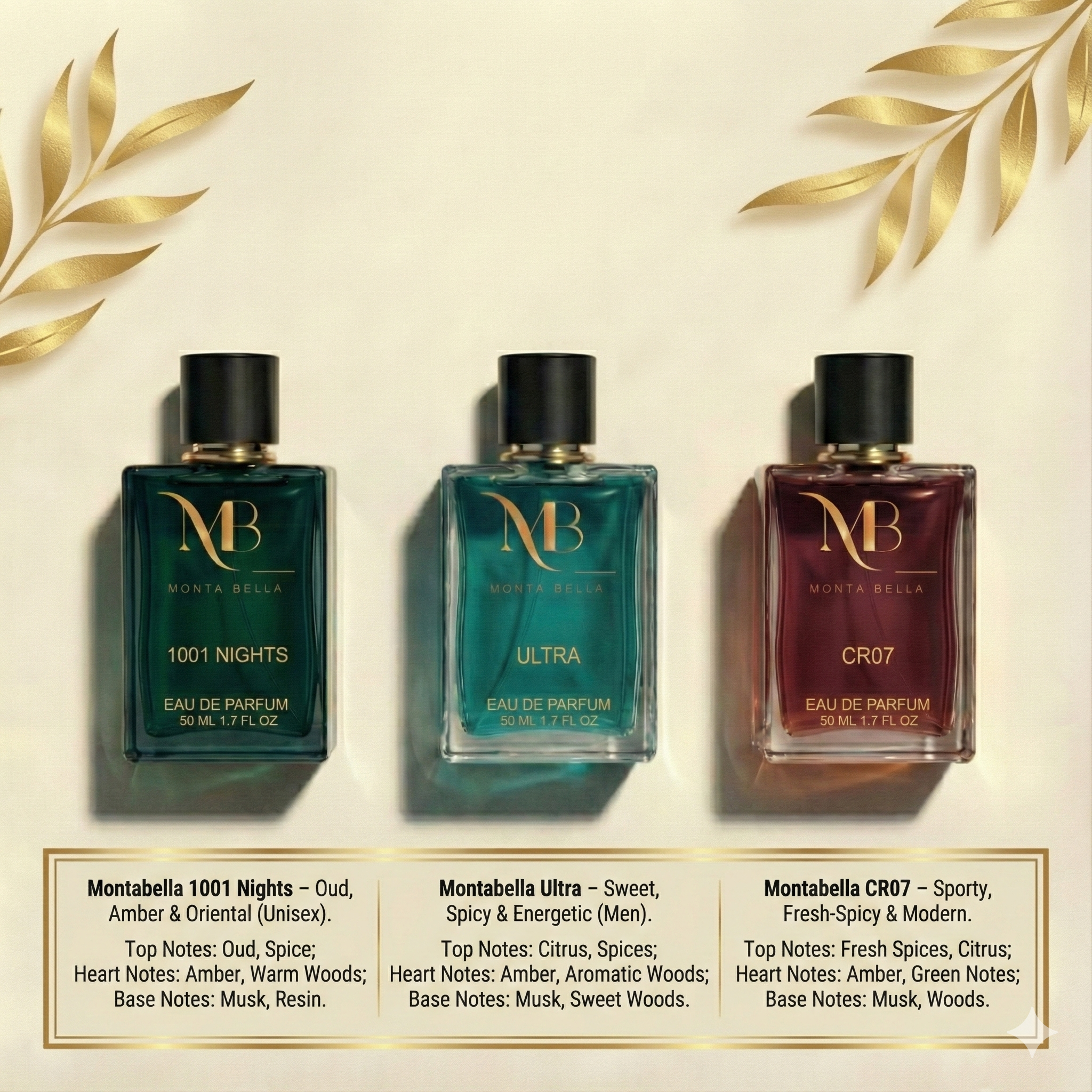 The Montabella Combo Set of 5 is designed for fragrance lovers who want multiple moods in one powerful collection. Instead of sticking to a single perfume, this set gives you the freedom to match your scent with your day, outfit, or occasion.